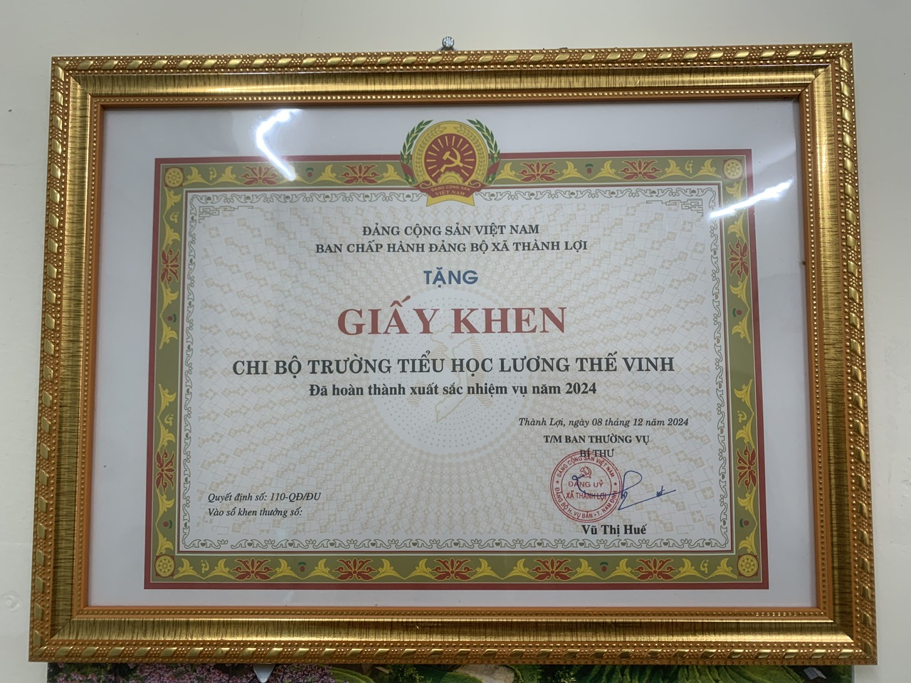 Chi bộ Trường Tiểu học Lương Thế Vinh (Trước đây là Trường Tiểu học Lương Thế Vinh xã Liên bảo; đến tháng 9/2024 thì có tên là Trường Tiểu học Lương Thế Vinh xã Thành Lợi, huyện Vụ Bản, tỉnh Nam Định và từ ngày 01/7/2025 là Trường Tiểu học Lương Thế Vinh phường Trường Thi, tỉnh Ninh Bình), với 23 Đảng viên, luôn chú trọng cải tiến tác phong, lề lối làm việc, thực hiện đường lối, chủ trương của Đảng, chính sách, pháp luật của Nhà nước, quán triệt, triển khai thực hiện nghiêm túc, đúng kế hoạch các chỉ thị, nghị quyết của các cấp ủy đảng, chính quyền và quy định của ngành giáo dục đề ra. 100% đảng viên thực hiện tốt việc “Đẩy mạnh học tập và làm theo tư tưởng đạo đức, phong cách Hồ Chí Minh” gắn với các cuộc vận động “Mỗi thầy giáo cô giáo là tấm gương đạo đức, tự học và sáng tạo”, phong trào “Xây dựng trường học thân thiện học sinh tích cực”…