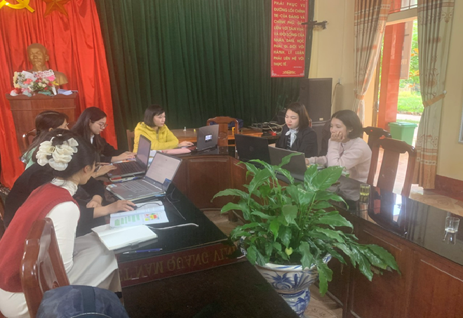 - Đồng chí Trần Văn Hiển (Tổ trưởng) hướng dẫn giáo viên làm việc, phân công cụ thể công việc cho từng giáo viên trong cuộc họp.